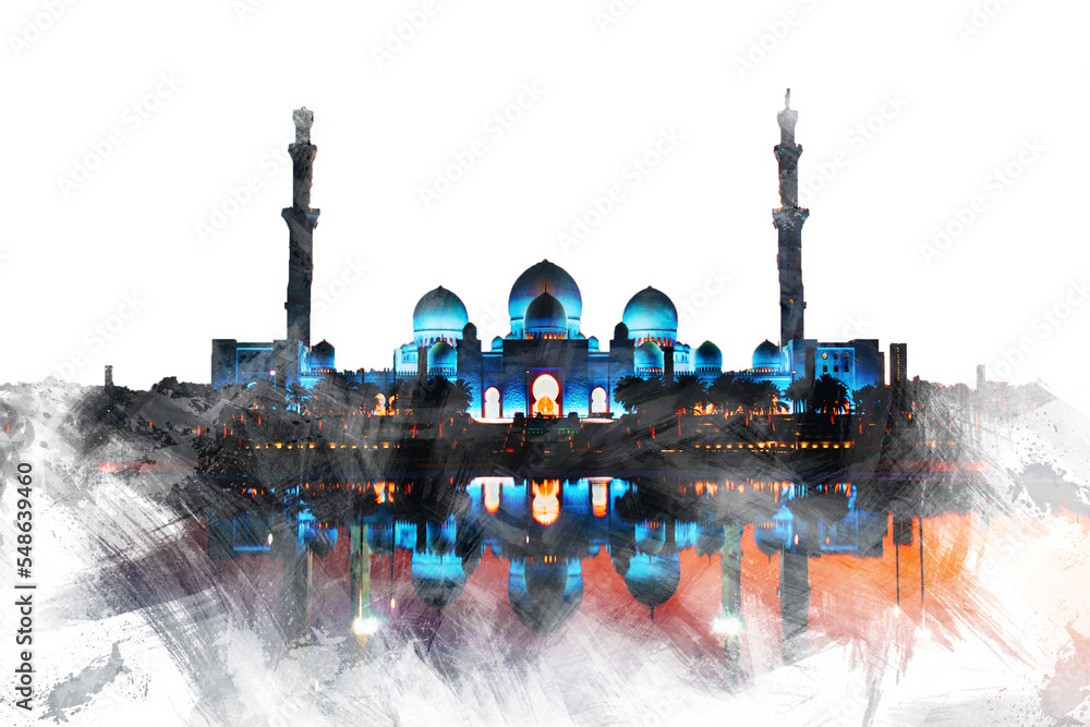 Obraz na plátně Grand Mosque in Dubai - Panorama of Sheikh Zayed Grand Mosque in Abu Dhabi near