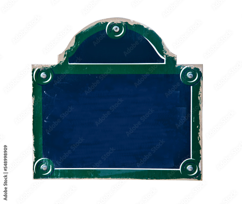 Obraz na plátně Vintage Paris street name sign, retro French blank metallic blue plate isolated