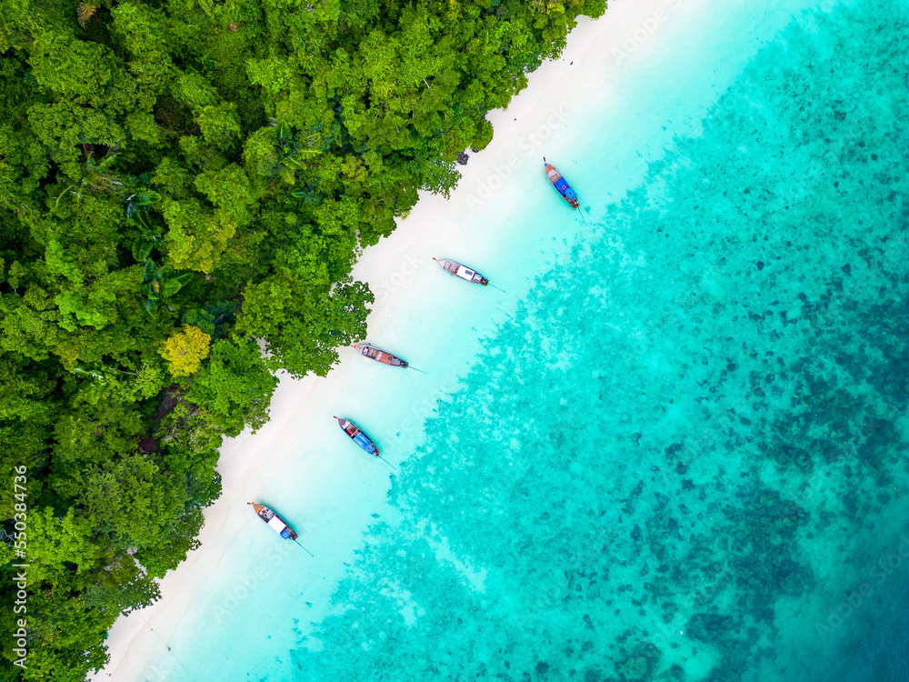 Obraz na plátně Aerial drone view of famous Monkey Beach at Ko Phi Phi island, Thailand