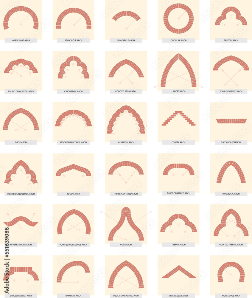 Obraz na plátně types of brick arches. Vector