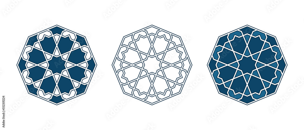 Obraz na plátně Set of Islamic traditional rosettes for greetings cards decoration and design isolated on white backgrounds