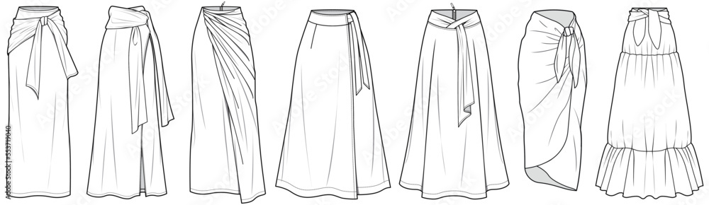 Obraz na plátně flat sketch set of womens skirt vector illustration technical cad drawing templa