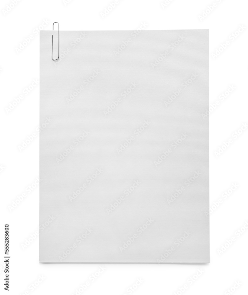 Obraz na plátně Blank sheets of paper with clip on white background, top view