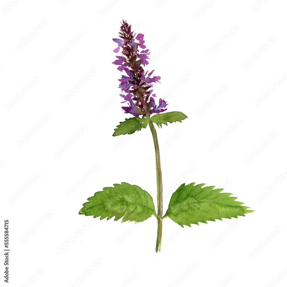 Obraz na plátně watercolor drawing flower of Korean mint, Patchouli, wrinkled giant hyssop,Agast