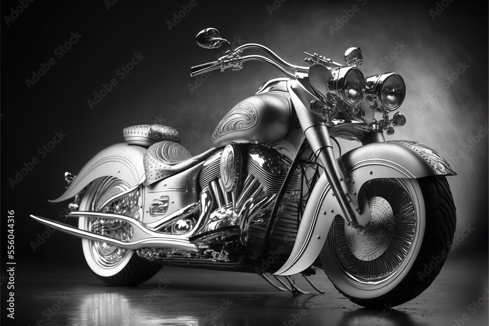 Obraz na plátně a black and white photo of a motorcycle parked in a dark room The motorcycle is