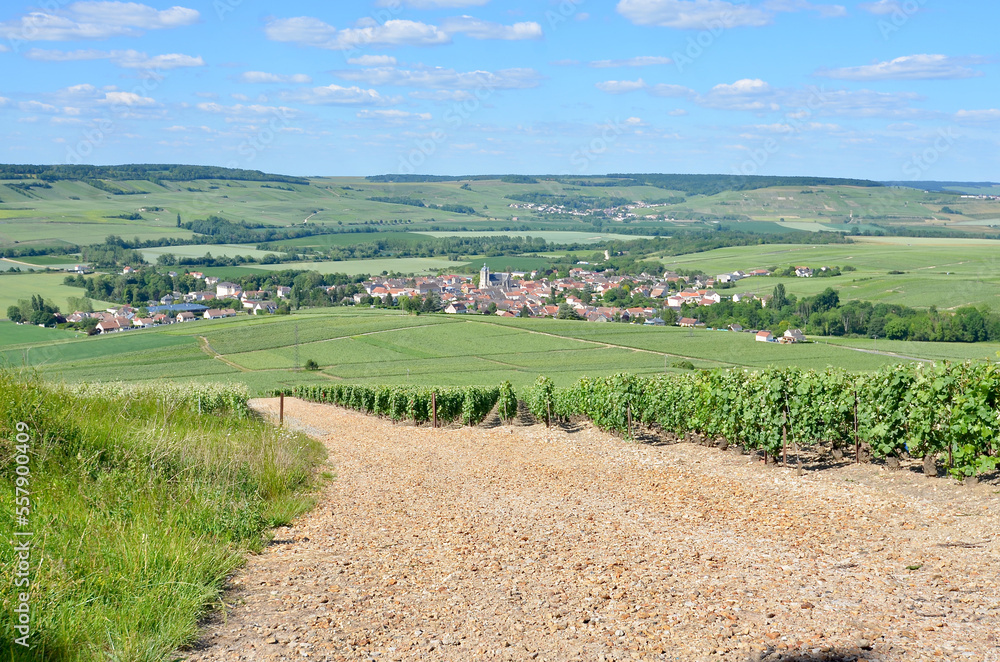 Obraz na plátně Vue sur le vignoble champenois dans les environs de Troissy, France, Champagne,