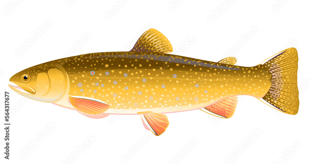 Obraz na plátně Realistic brook trout fish isolated illustration, one freshwater fish on side vi