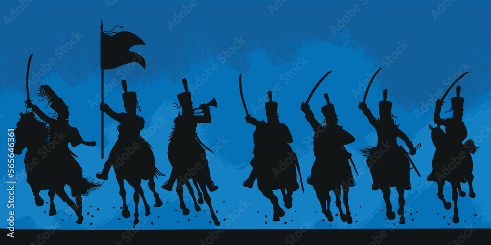 Obraz na plátně Silhouette of a horse soldiers