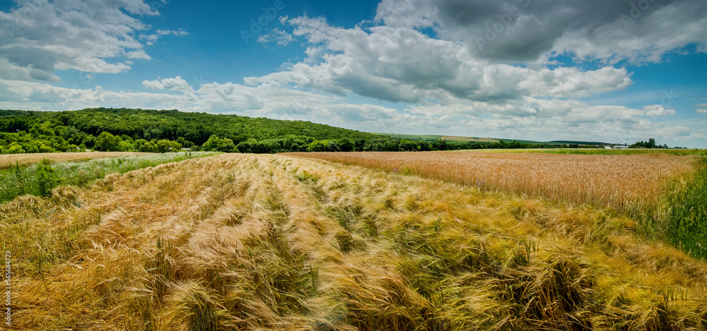 Obraz na plátně ripening rye ears on peasant allotments, small grain plantations of farmers, org