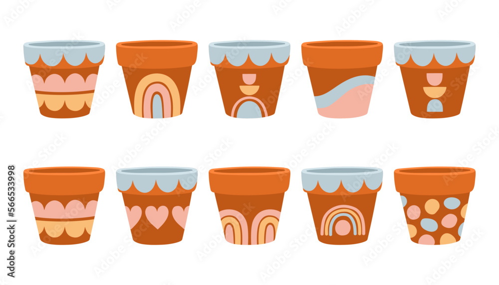 Obraz na plátně Empty flower pots set vector design illustration isolated on white, different pa