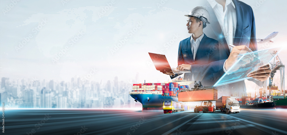 Obraz na plátně Business and technology digital future of cargo containers logistics transportat