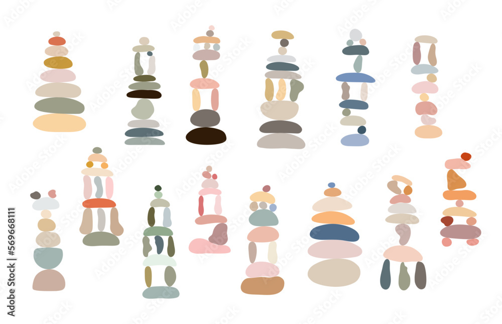 Obraz na plátně Zen stone cairns set in simple abstract doodle style vector illustration with sh