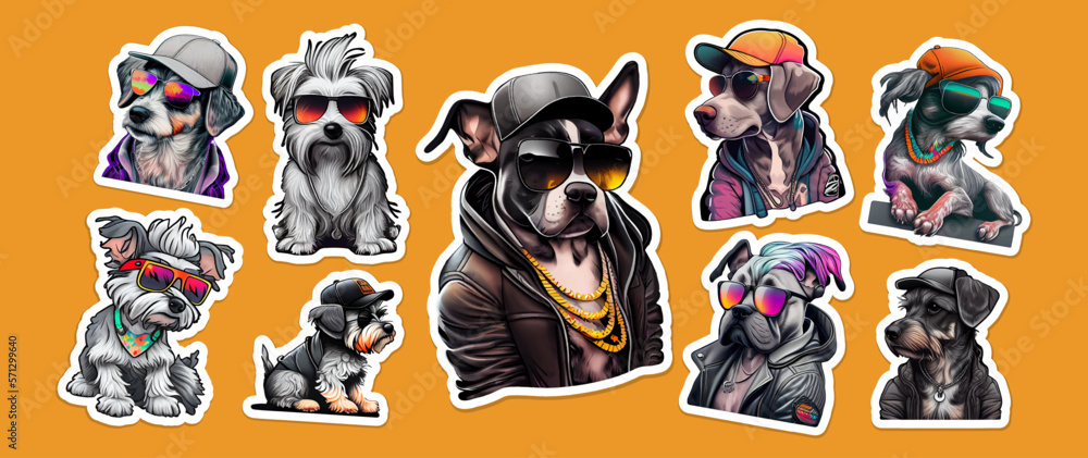 Obraz na plátně Big bundle of stickers with funny and cute dogs