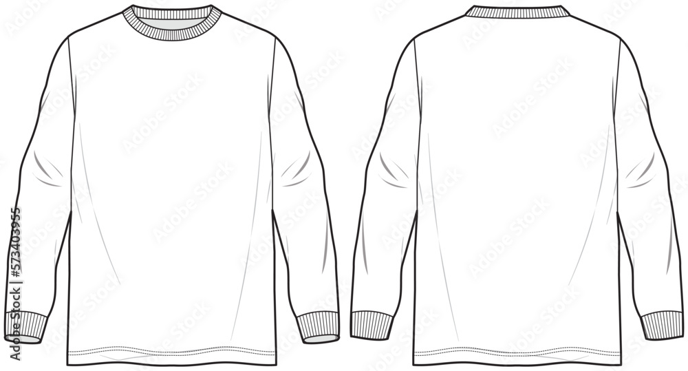 Obraz na plátně mens crew neck long sleeve oversized t shirt flat sketch vector illustration tec