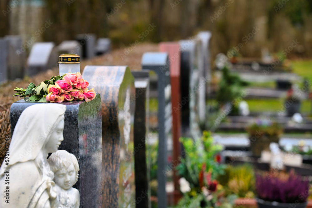 Obraz na plátně flowers in a cemetery lantern lush mourn colourful sunshine silence faith freedo