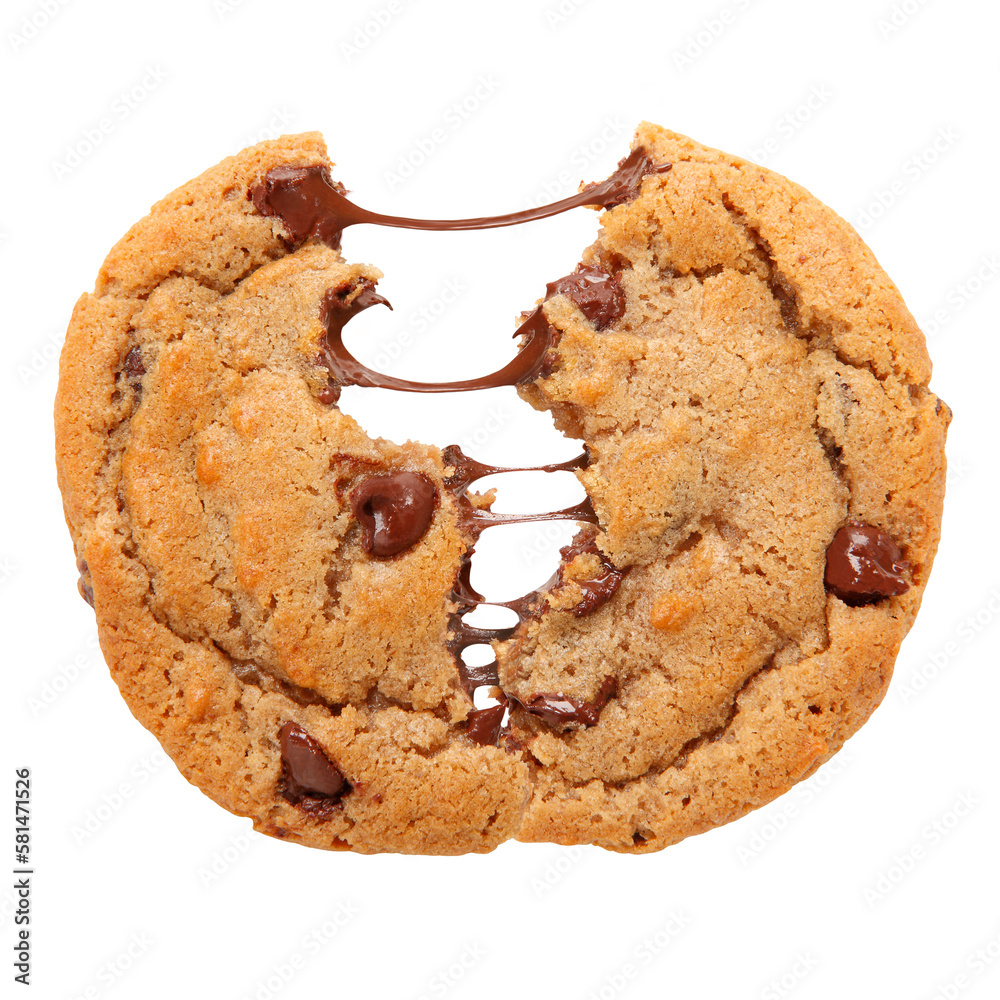 Obraz na plátně Ooey Gooey Chocolate Chip Cookie isolated white closeup pull apart