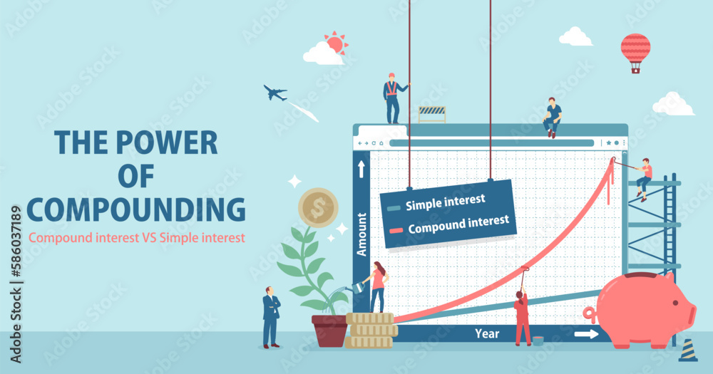 Obraz na plátně Vector banner illustration with the motif of the effect of compound interest