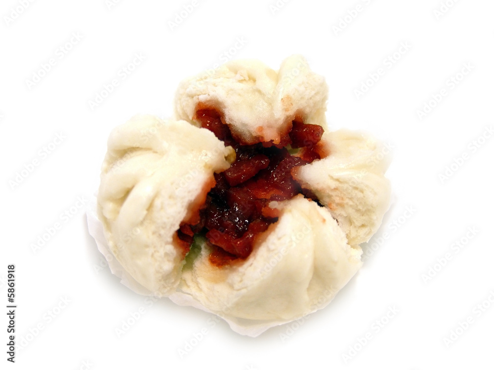 Obraz na plátně Closeup of isolated Chinese food barbecued pork bun