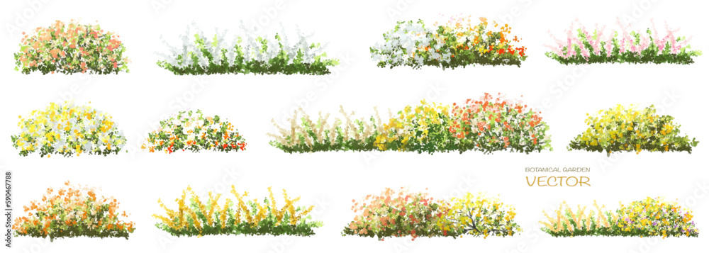Obraz na plátně Vector watercolor blooming flower tree side view isolated on white background fo