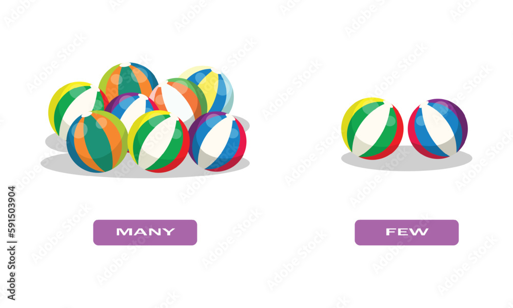 Obraz na plátně Opposite antonym word many and few illustration of balls