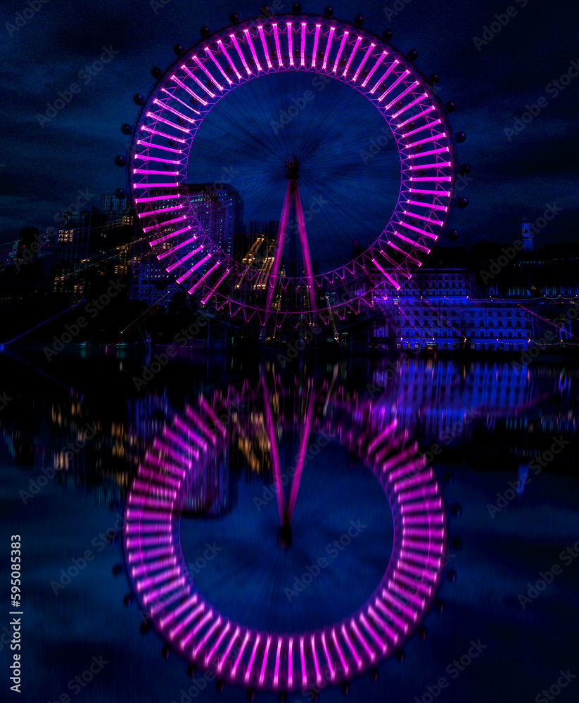 Obraz na plátně London eye in slow motion at night