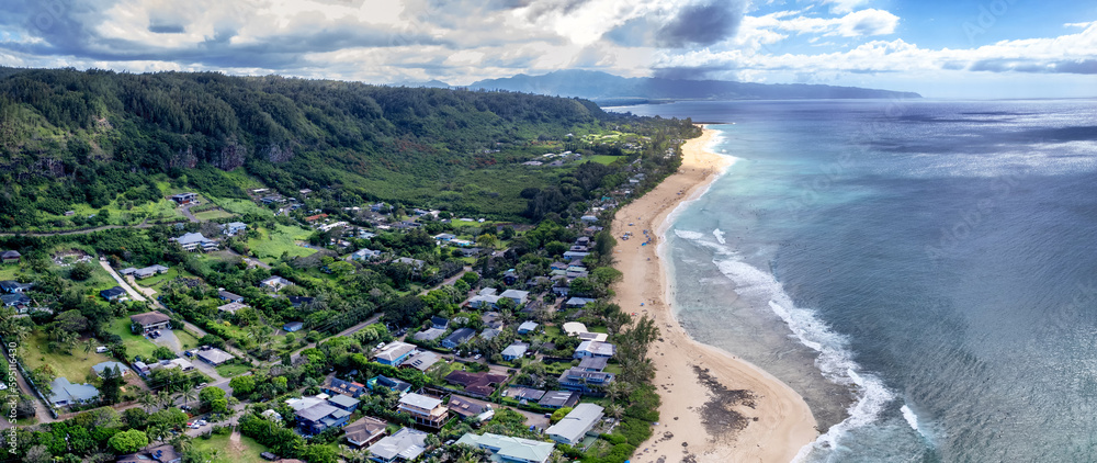 Obraz na plátně Aerial view of the north shore of Oahu, Hawaii, overlooking Ehukai Beach known f