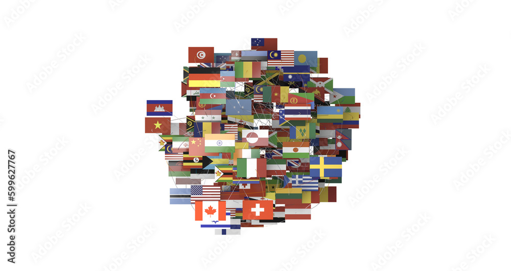 Obraz na plátně Connection lines Around map with all country flags, Futuristic Technology - PNG