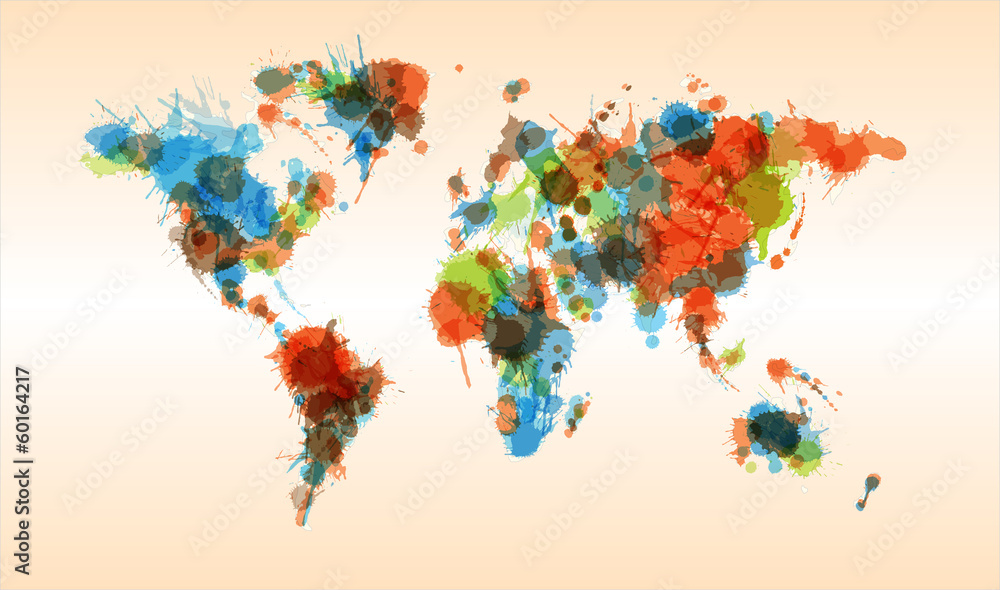 Obraz na plátně Grunge colorful world map