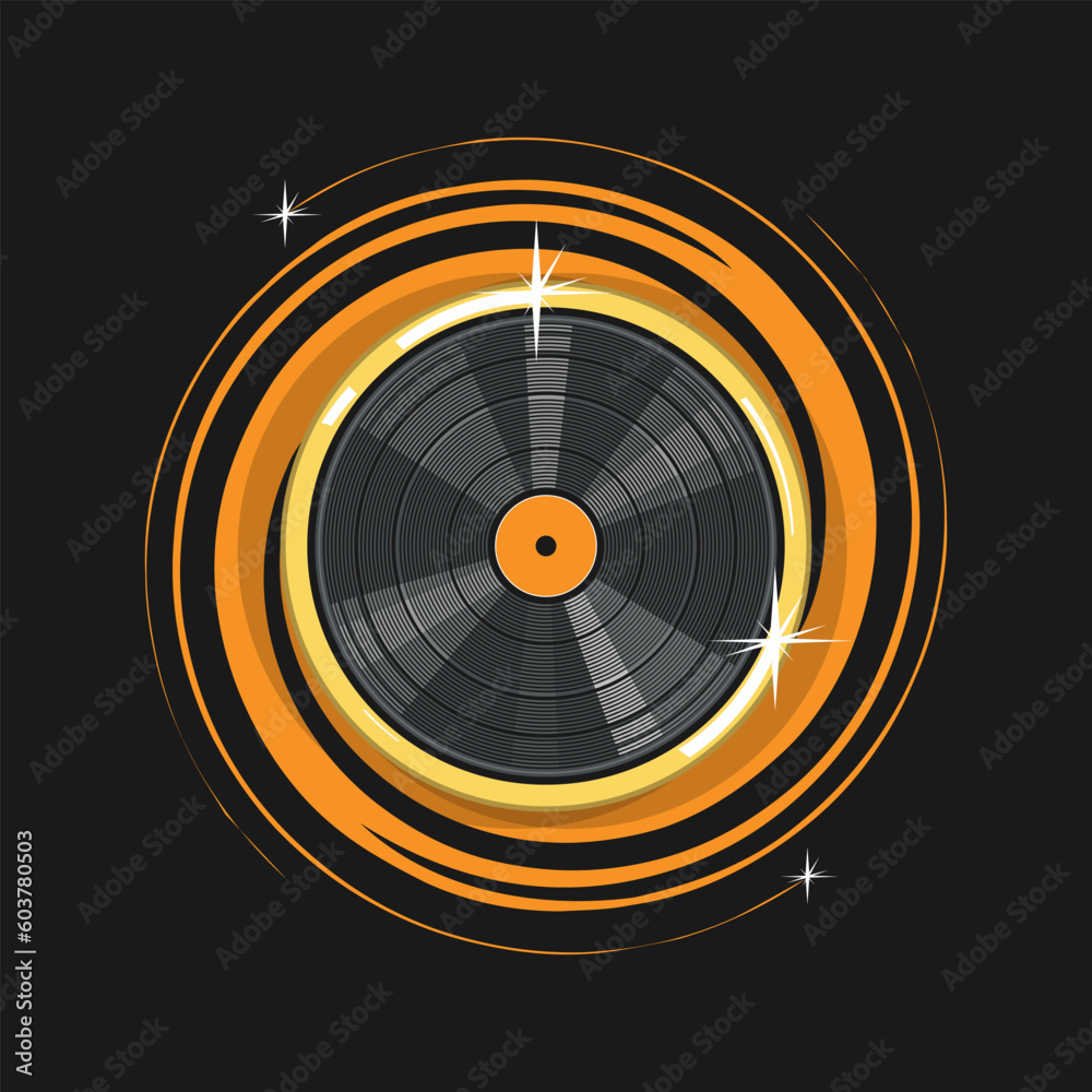 Obraz na plátně Vinyl record with golden halo and sparkles on black background