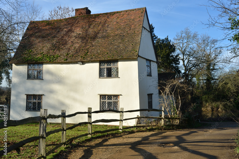 Obraz na plátně Rear of large white cottage