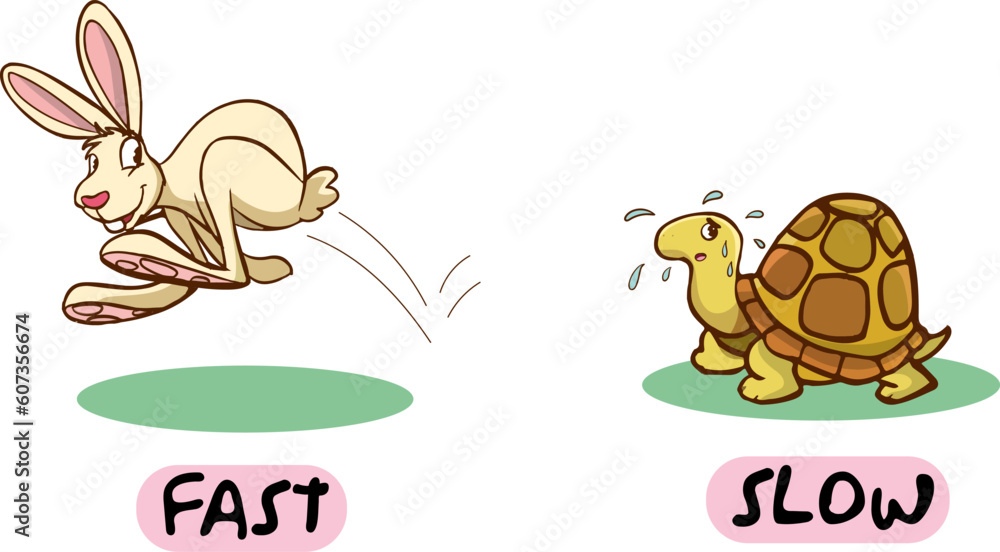 Obraz na plátně Opposite words for fast and slow cartoon vector