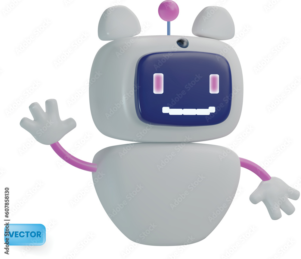 Obraz na plátně Cute winking smiling chat bot charachter, mascot for customer support service or AI servers