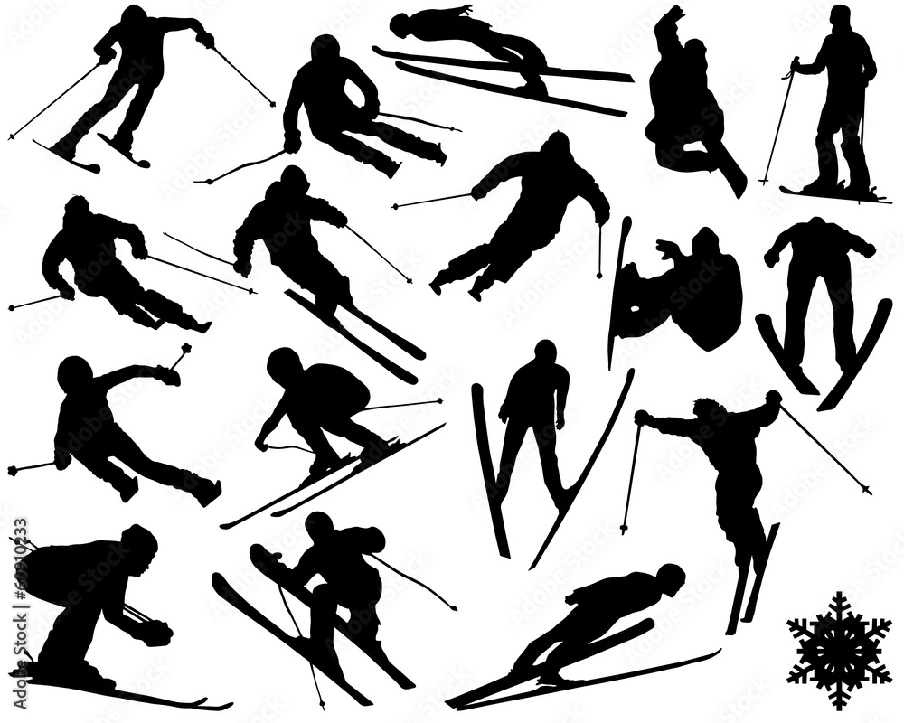 Obraz na plátně Black silhouettes of skiing , vector illustration