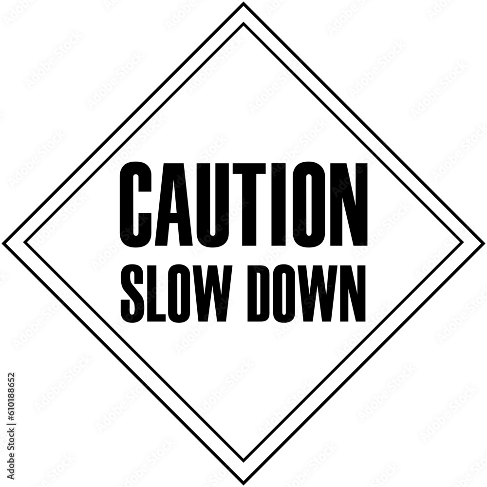 Obraz na plátně Caution slow down single vector sign for pedestrians and traffic safety in black and white