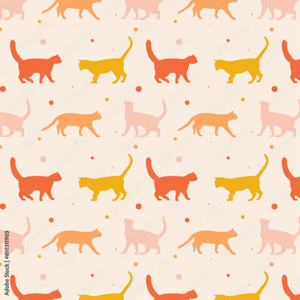 Obraz na plátně Simple vector seamless pattern with cat silhouette vector illustration, flat des