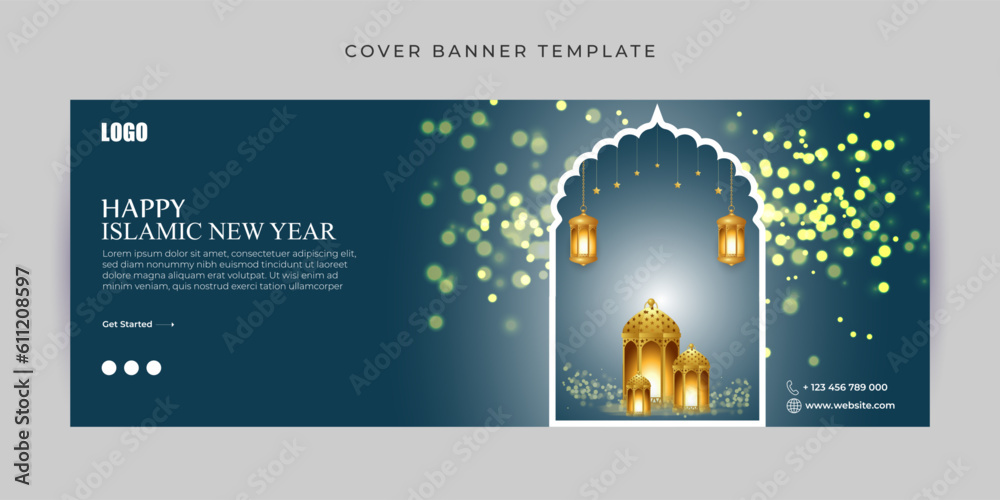 Obraz na plátně Vector illustration of Happy Islamic New Year Facebook cover banner mockup Templ