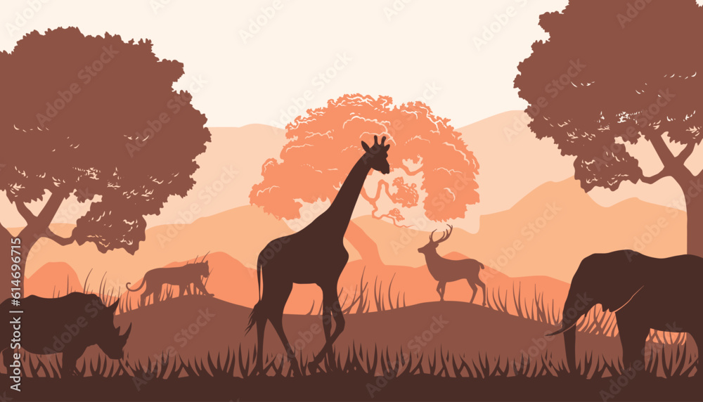Obraz na plátně Shadow silhouette with forest scene in the background