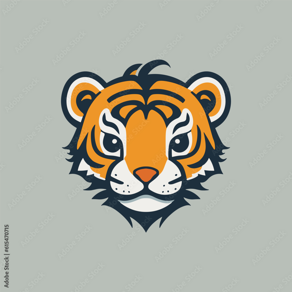 Obraz na plátně Cartoon Illustration of baby tiger head, cute animal head can be use as logo