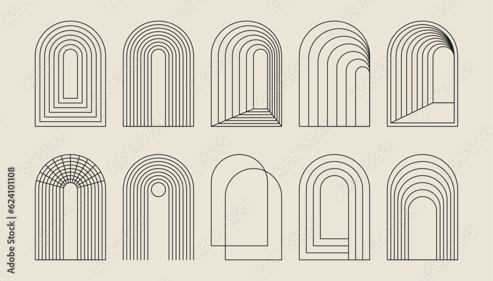 Obraz na plátně Boho frame arch vector illustration modern minimalistic retro aesthetic linear a