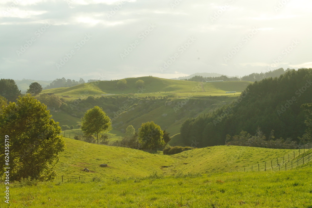 Obraz na plátně The shire sunset on the hills in a magical moment