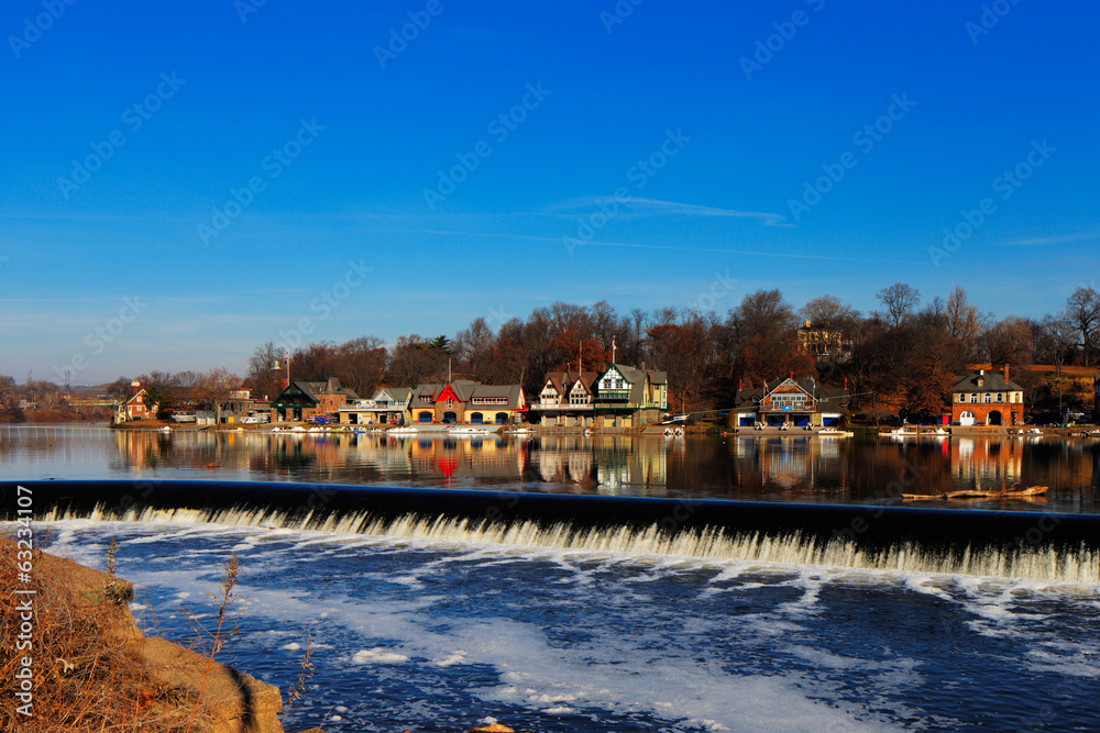 Obraz na plátně The famed Philadelphia’s boathouse row in Fairmount Dam Fishway