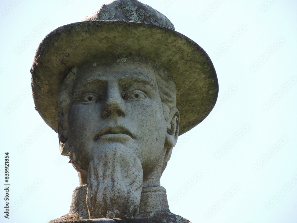 Obraz na plátně Spooky confederate soldier statue with scary eyes.