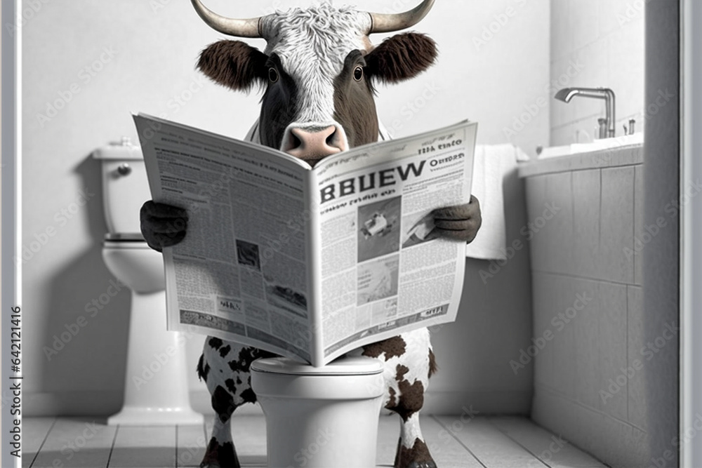 Obraz na plátně cow on Toilet Reading Newspaper, generative Ai