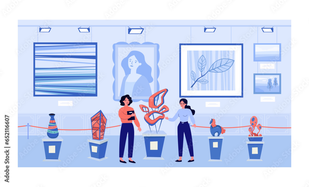 Obraz na plátně Art gallery with paintings and sculptures vector illustration