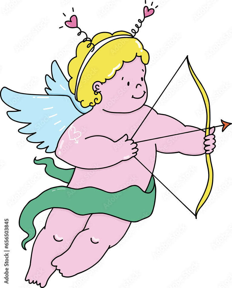 Obraz na plátně Beautiful little putti angel with bow isolated png illustration on transparent background