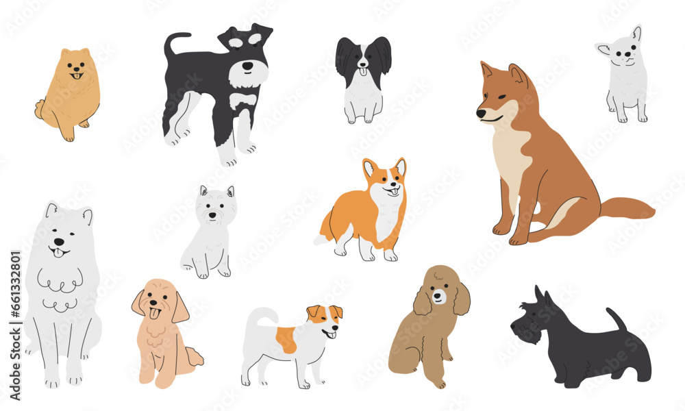 Obraz na plátně Collection of cute baby dogs cartoon hand drawn style