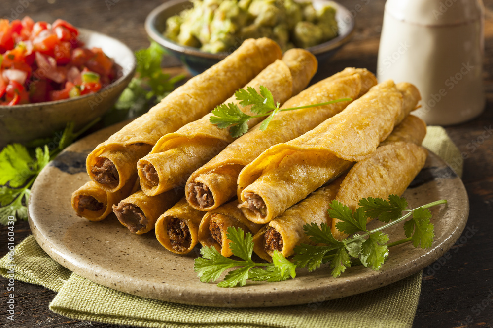 Obraz na plátně Homemade Mexican Beef Taquitos