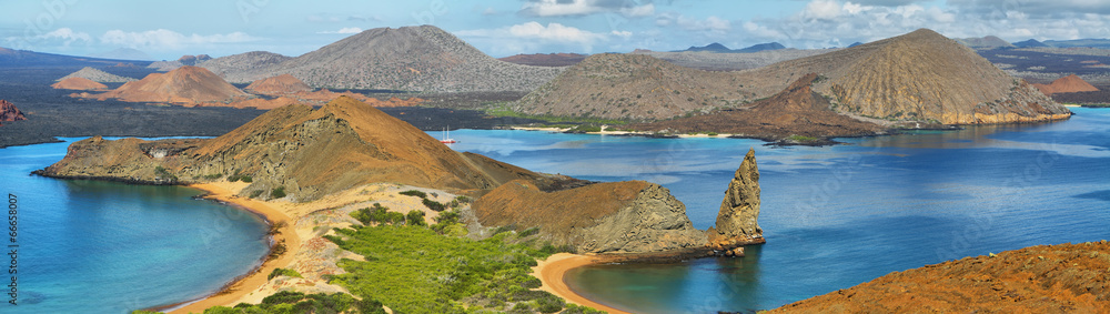 Obraz na plátně Panoramic view of pinnacle Rock and surroundings in Bartolome
