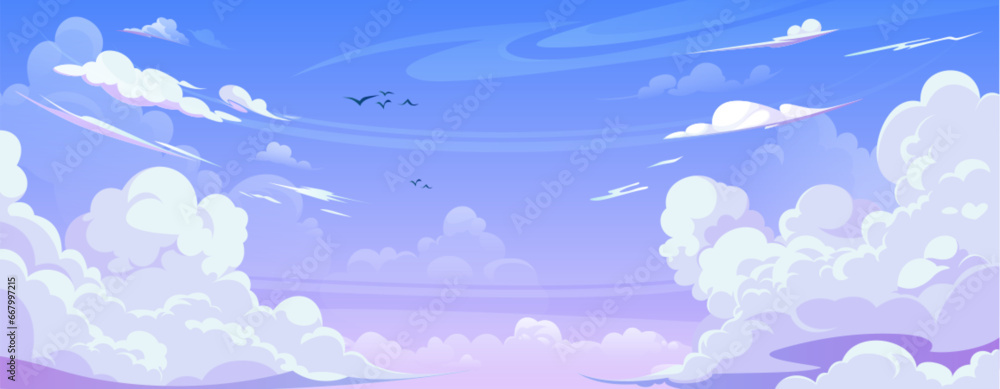 Obraz na plátně Sky with anime fluffy curve shaped clouds