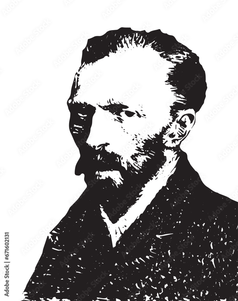 Obraz na plátně Portrait of Vincent Van Gogh vector in Black and White Silhouette
